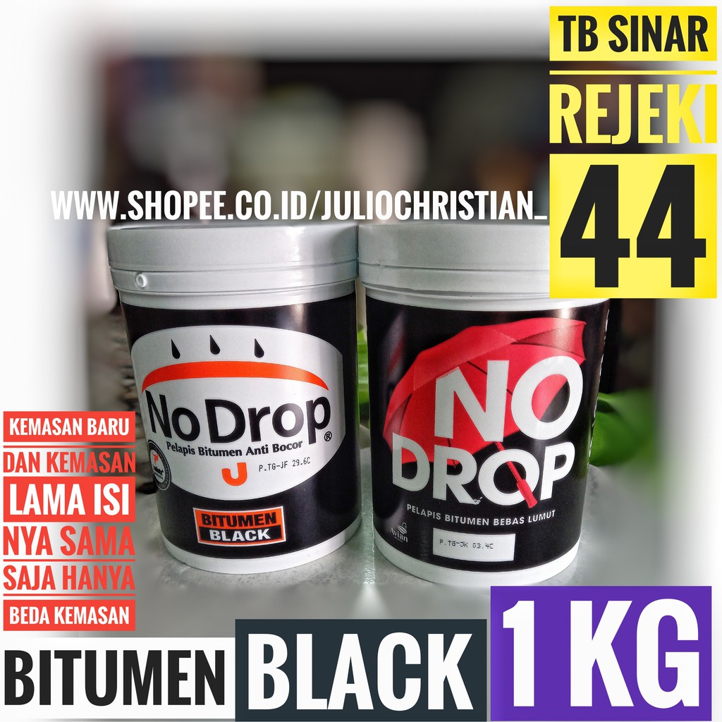 HATI HATI TERTIPU DENGAN BARANG MURAH; BARANG KAMI DIJAMIN 100% ORIGINAL YANG MANA ORIGINAL ADALAH KUALITAS TERBAIK..Harga Rp 32,000 sdh Termasuk Packing Kardus Bubble Wrap, Barang anda dijamin aman sampai Tujuan. Pulau Jawa, Madura, Bali.Sumatera : Lampung, Jambi, Bengkulu, Sumatera Selatan, Sumatera Barat.NO DROP BITUMEN BLACKUKURAN 1 KGNo Drop Bitumen Black adalah pelapis bitumen non fiber berbasis air, bersifat elastis dan bermutu tinggiá¾¾ Memberikan perlindungan pada permukaan beton, plasteran, logam/besi maupun kayu sebagai pelapis anti bocor, mencegah rembesan air serta anti karat.Setelah mengering No Drop Bitumen Black akan menjadi lapisan bitumen berwarna hitam yang akan melindungi permukaan.KEGUNAAN DAN KEISTIMEWAAN:Kedap airSangat elastisSangat tahan cuacaAnti karatCepat keringTahan lamaMudah digunakan•Daya Sebar Teoritis : ± 2 M² /kg, tergantung porositas permukaan.•Penampilan : semigloss.•Warna : HITAM.•Pengencer : Air bersih.•Waktu Kering Sentuh : 30 menit, tergantung sirkulasi , suhu dan kelembaban udara.•Waktu Kering Keras : minimal 24 Jam.•Cara Aplikasi : kuas, roll, spray airless.•Permukaan yang akan dicat harus kering bersih, bebas dari karat, debu, minyak dan kotoran.CARA PENGGUNAAN:•Aduk dulu No Drop sampai rata sebelum digunakan.SEBAGAI PELAPIS ANTI BOCOR:Untuk permukaan tembok, beton, asbes, plaster:Aplikasi 1 lapis No Drop yang diencerkan dengan air ± 20% sebagai cat dasar.Biarkan kering sebelum mengulang lapisan berikutnya.Untuk lapisan kedua dan selanjutnya, aplikasi No Drop tanpa pengencer sampai ketebalan minimal 250 micron.Untuk permukaan galvanis/ seng:Aplikasi 1 lapis Active primer sebagai lapisan dasar untuk menghasilkan daya lekat yang baik.Setelah kering aplikasi No Drop tanpa pengencer sampai tercapai ketebalan kering minimal 250 micron.Untuk memperbaiki retakan / sambungan:Jika diperlukan, No Drop Bitumen Black dapat dicampur dengan pasir dan semen untuk menutup retakan.SEBAGAI PENCEGAH KARAT:Bersihkan karat dari permukaan.Aplikasi No Drop Bitumen Black dengan ketebalan kering minimal 1 –