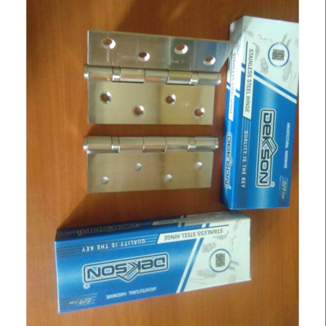 Engsel pintu merk Dekkson dengan type Ecoline.Dimensi ukuran : 4" x 3" x 2mm-2BBBahan : Stanlies SteelFinishing : Hairline