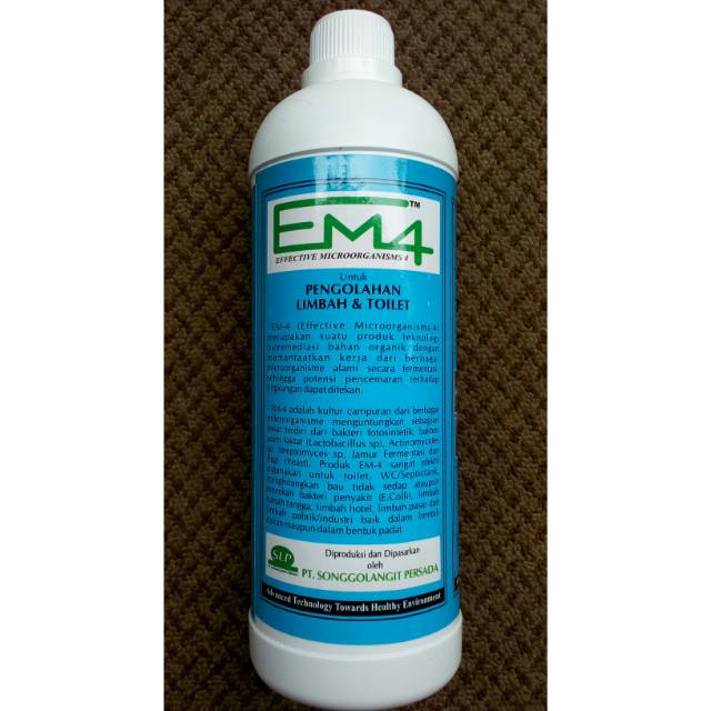 Untuk PENGOLAHAN LIMBAH & TOILET EM-4 (Effective Micro organisms-4) merupakan ediasi bahan organik memanfaatkan kerja dari b microorganisme secara ferme sehingga potensi pencemaran terhad lingkungan dapat ditekan EM-4 adalah kultur campuran dari berba mikroorganisme menguntungkan seba besar terdiri dari bakteri fotosintetik, bakt asam laktat(Lactobacillus sp), Actinom sp Streptomyces Jamur Fermentasi Kagi (Yeast. Produk EM-4 sangat efekt untuk toilet WC/Septict menghilangkan bau tidak sedap a menekan bakteri penyakit (E Colli, limba tangga, limbah limbah pasar limbah pabrik/industri baik dalam bencairan maupun dalam bentuk padat Kemasan 1lt