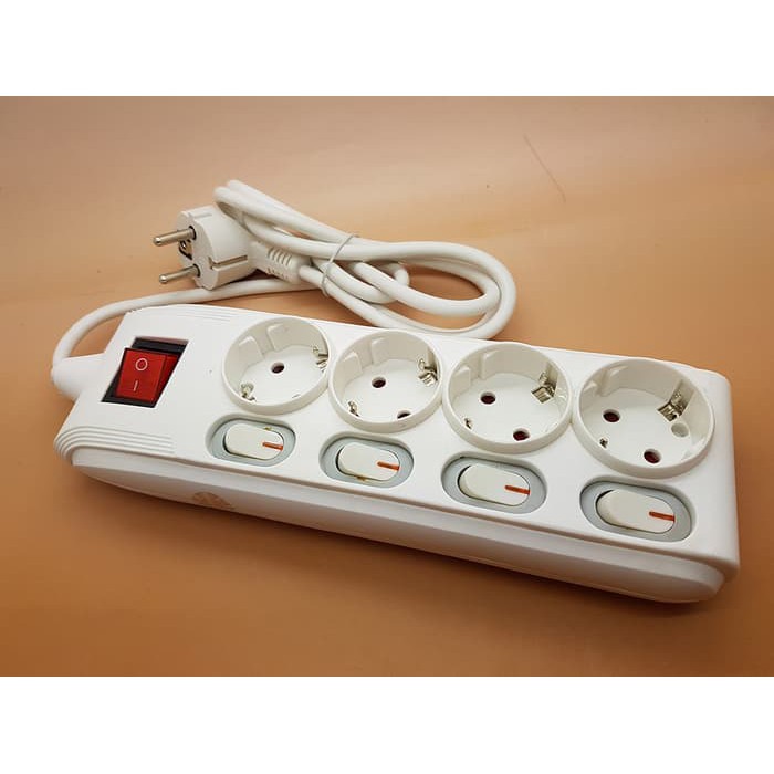 Kenmaster Stop Kontak F144 SwitchKenmaster Stop Kontak F144 Switch adalah stop kontak dengan overheat protection yang akan memutus aliran listrik secara otomatis jika terjadi kelebihan beban. Dilengkapi dengan master switch dan individual switch yang memudahkan Anda dalam mengatur kelistrikan. Memiliki 4 lubang dengan saklar otomatis pemutus arus bila kelebihan beban.Spesifikasi :- Stop kontak- Dengan overheat protection yang akan memutus aliran listrik secara otomatis jika terjadi kelebihan beban- Dilengkapi dengan master switch dan individual switch yang memudahkan Anda dalam mengatur kelistrikan- Memiliki 4 lubang dengan saklar otomatis pemutus arus bila kelebihan beban dan panas. Mencegah bahaya kebakaran ( ANTI OVERHEAT & OVERLOAD ).- Voltase : 10 A / 220 V- Power : 2500 W- Kabel Tembaga murni berstandar tinggi 3 x 0.75 qmm - H05VV-F- Terbuat dari bahan plastik berkualitas- Standar SNI 04-3892.1-2006- Panjang : 16,5cm , Tinggi : 34,4 cm, Lebar : 4,5cm barang tersedia boss , langsung dipesan , akan segera kami p
