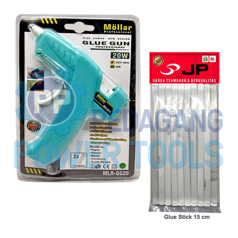 HARGA DIJAMIN TERMURAH...DENGAN MEMBELI PAKET INI, ANDA MENDAPATKAN SET ALAT GLUE GUN DAN ISI LEM TEMBAK SEBAGAI BERIKUT :- 1 UNIT MOLLAR GLUE GUN 20 WATT - BIRU- 10 PCS ISI ULANG LEM TEMBAK UKURAN KECIL PANJANG 15 CMMOLLAR GLUE GUN 20 WATT - BIRUBrand : MOLLARDaya listrik : 20 WattMenggunakan isi ulang lem tembak ukuran kecil.Digunakan untuk : kertas, plastik, keramik, kayu, dll.ISI ULANG LEM TEMBAK UKURAN KECIL PANJANG 15 CMQty : 10 PcsUkuran panjang : 150 mmDiameter : 7,4 mmDigunakan untuk mesin glue gun kecil berdaya 10 watt, 15 watt, 20