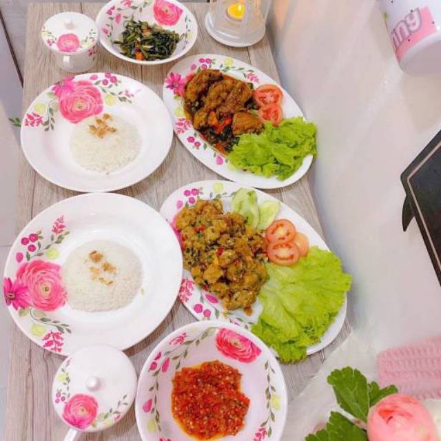 Onyx Seiv Elona Melamine Motif Set Of 10Dinner set komplit dari material melamine membuat hidangan apapun jadi semakin lahap disantap bersama orang tersayang. Peralatan makan yang ringkas dan hemat ruang penyimpanan, karena piring, gelas, dan mangkok mudah ditumpuk.Ditambah desain Floral yang cantik dan elegan membuat Onyx Seiv Elona Melamine Motif Set Of 10 ini cocok jadi teman setia di meja makan Anda.Pas juga dijadikan sebagai kado, tambah koleksi Anda atau keluarga kecil dan pasangan yang baru memulai rumah tangga. Jadikan momen makan malam lebih hangat dan praktis bersama Onyx Seiv Elona Melamine Motif Set Of 10.1 Set Onyx Seiv Elona Melamine Motif set of 10 terdiri dari: - 2 pcs Piring Oval ukuran 12 inch- 2 pcs Piring ukuran 9 inch- 2 pcs Mangkuk ukuran 7 inch- 2 pcs Gelas kapasitas 250 ml- 2 pcs Tutup Gelas Keunggulan produk : - Mudah ditumpuk saat tidak digunakan sehingga hemat ruang penyimpanan- Material melamine dan Food Grade, aman untuk berbagai jenis makanan- Desain cantik dengan motif floral- 1 setnya isi beragam ukuran alat makan, PRAKTIS dan bisa dijadikan kado atau pakai sendiri- STOK Terbatas!!  Ukuran------------Dimensi : 320 x 240 x 123 mmBerat Real : 1,3 kg = berat asli kirim kami khusus jne dan gosend.Berat Voume :