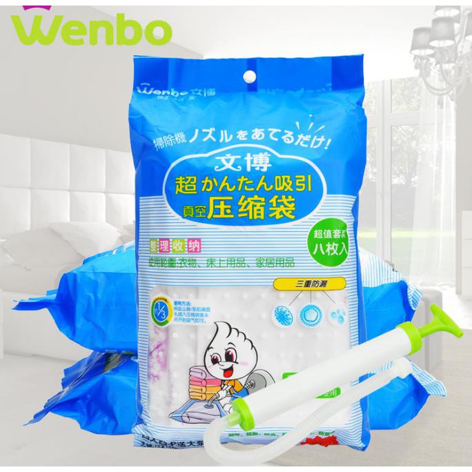 ag Jangan biarkan barang-barang di rumahmu menumpuk begitu saja, karena akan membuat barang tersebut jadi tidak tahan lama dan cepat rusak. Buat kamu yang butuh ruang penyimpanan lebih, kamu bisa menggunakan Vacuum Bag. Ini adalah produk berupa kantong plastik yang bisa dimanfaatkan sebagai ruang penyimpanan barang-barang yang tidak terpakai. Vacuum Bag adalah kantong plastik fleksibel yang bisa mengeluarkan udara dari dalam kantong tersebut dengan menggunakan vacuum cleaner. Barang-barangmu nggak akan cepat rusak, karena Vacuum Bag didesain agar tahan air dan kedap udara. Dengan menggunakan produk ini, tentu kamu juga bisa lebih menghemat ruang yang adaISI KEMASAN : 80 x 110 cm - 2 pcs60 x 80 cm - 3 pcs50 x 70 cm - 3 pcsFree pompa manua