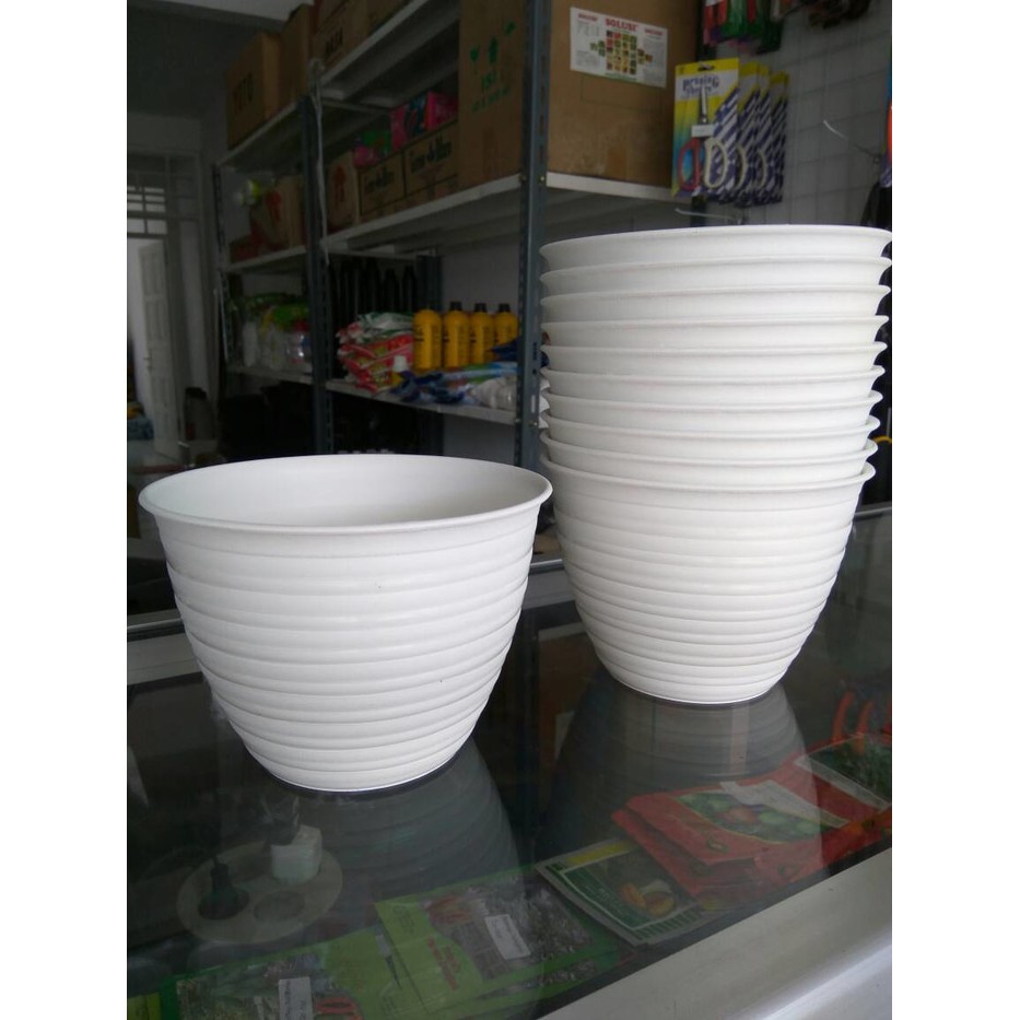 Deskripsi ProdukPot Tanaman dan Bunga Plastik warna Putih Tawon 12 cmDiameter atas: 12cmDiameter bawah: 6.5 cmTinggi: 8.5 cm4 Lubang airBahan tebal dan