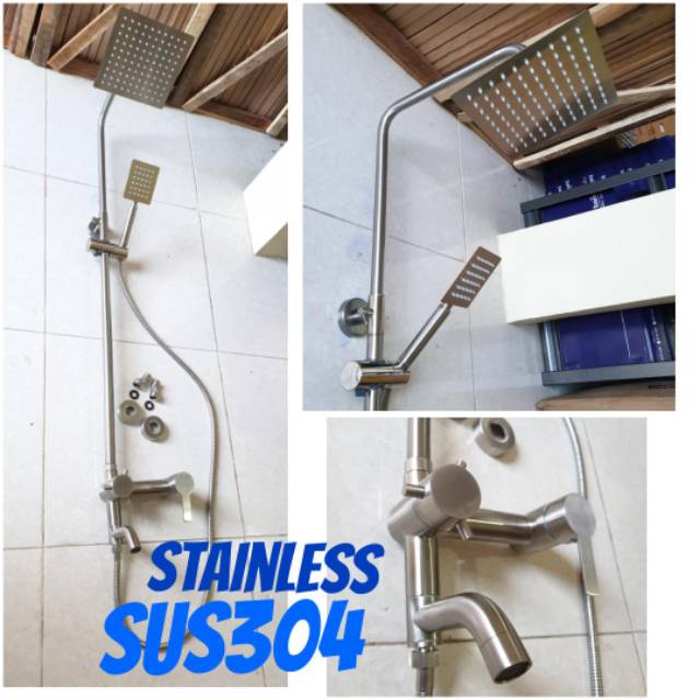 SHOWER TIANG SET COULOMN + KRAN MIXER PANAS DINGINFULL STAINLESS 304 ANTI KARAT(tidak ada bahan besi maupun plastik)spesifikasi :- tinggi tiang shower 110cm- wall shower 8in 20cmx20cm- hand shower 8cmx12cm- selang shower kecil 1,5meter- 2 buah double niple Z bahan stainless 304- berat kran mixer panas dingin hampir 2kg- berat asli barang 5kg- ukuran kardus 82cmx40cmx14cm(volumetrik dijne,jnt,wahana,pos 7kg)DIJAMIN KUAT DAN