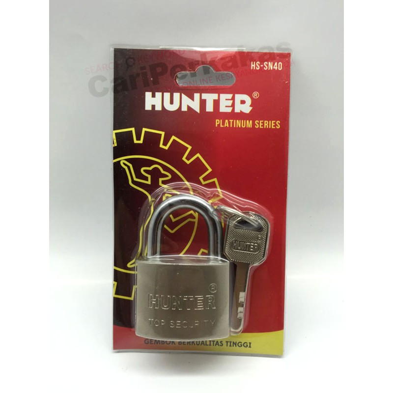 Gembok besi chrome HUNTER ukuran 40 mm leher pendek. Anak kunci da