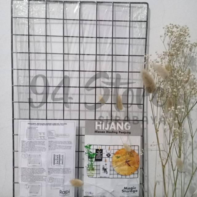 Hijang (Hiasan Dinding Panjang)Rp 36.000Bosan dengan hiasan yang itu-itu saja?Kamu bisa menggunakan hiasan dinding ini dan mendekorasi sendiri hiasan kamu.Sebuah hiasan dinding yang simple sesuai untuk kamu yang tidak suka ribet.Mudah untuk dibersihkan.Pemasangan yang mudah dan praktis tidak banyak memakan waktu Anda dalam pengaplikasian hiasan ini.Hijang Bisa Digunakan sebagai penunjang dekorasi pada tembok seperti :✓ Notes✓ Foto✓ PajanganDalam 1 paket produk ini berisi :✓ Hiasan Dinding 1 pcs✓ Clamp Dinding 4 pcs✓ Tutorial Pemasangan 1 pcsUkuran :Hijang : 52x35 cmBahan :Kawat Baja dengan ketebalan 4mm sisi luar dan 2.7 mm sisi dalamTersedia dalam 2 varian warna :– Hitam– Putih#hijang #hijangsurabaya #hijangmurah #hijangfoto #wallgrid #wallgridmurah #wallgridsurabaya #wallgridtumblr #hijangtumblr #tempatfoto #hiasandindingtumblr #hiasandindingfoto #hiasankantor #hijanghitam #hijangputih #hijangready #wiregridwalltumblr #wiregridt