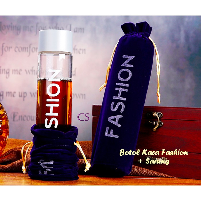 Botol Kaca FASHION + Sarung (1 set dengan sarung)READY : HIJAUYuk tampil trendy dengan botol kaca fashion. Botol minum unik, ada tulisan "FASHION" di body botol. Dari bahan kaca tebal, tahan panas atau dingin dengan kapasitas 500 ml.Botol dilengkapi sarung cantik dari bahan bludru halus, ada tulisan "FASHION" di bagian depan sarung. Sarung berfungsi sebagai penahan panas atau dingin dari minuman yang disimpan di dalam botol. Sarung dilengkapi tali penutup, bisa ditenteng, keren lohSize : 5.4 x